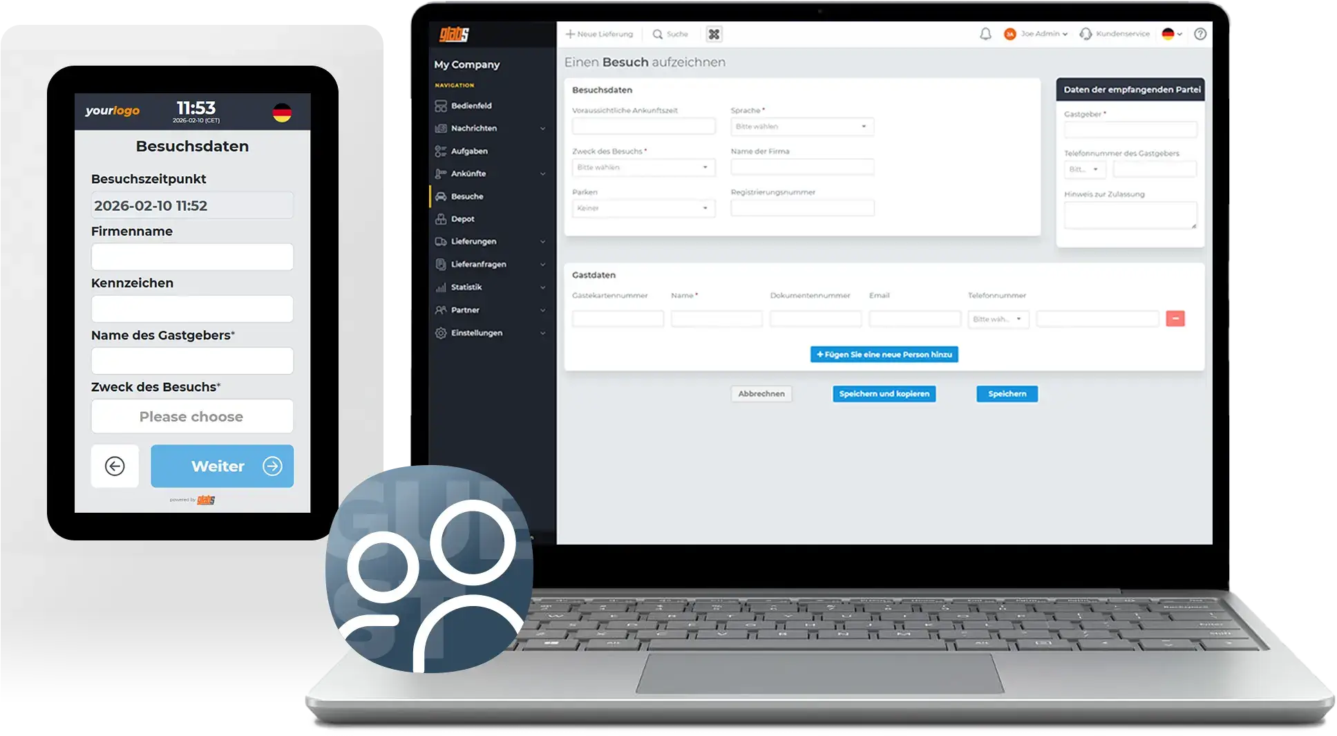 Das GLABs Visitor-Management-Modul stellt sicher, dass auf personenbezogene Daten von Besuchern ausschließlich diejenigen Personen Zugriff haben, die diese Informationen für ihre berufliche Tätigkeit benötigen. Selbst der Gastgeber kann die personenbezogenen Daten des Besuchers nicht einsehen, wodurch ein vollständiger Datenschutz gewährleistet wird. Der datenschutzkonforme Betrieb des Systems stellt sicher, dass Speicherung und Verarbeitung der Daten den strengsten gesetzlichen Anforderungen entsprechen.