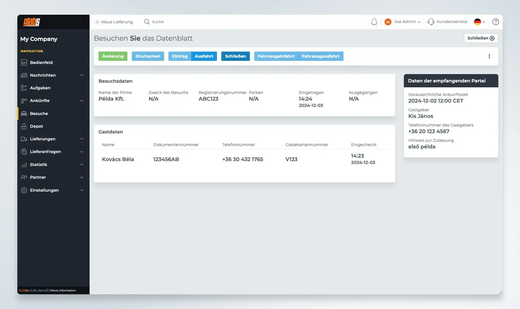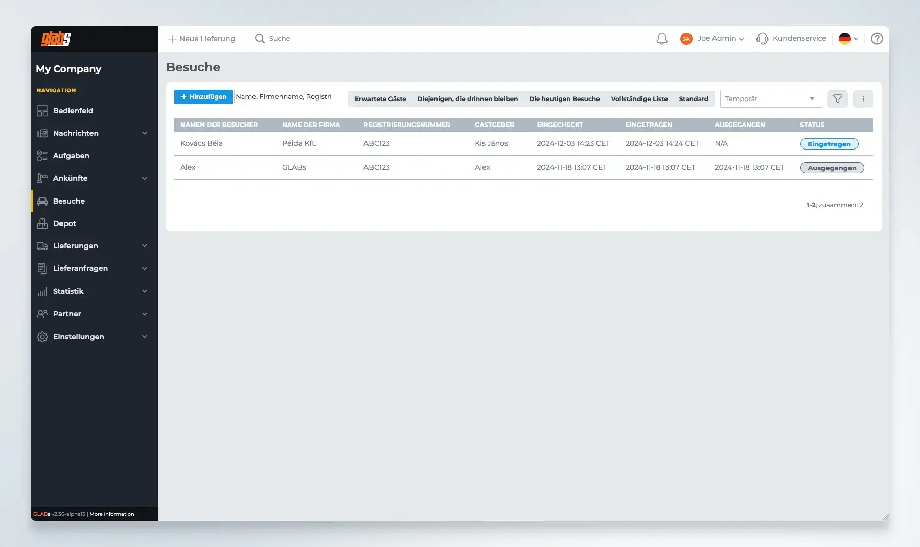 Das GLABs Visitor-Modul ermöglicht die vorausgehende Registrierung von Besuchern, sodass bei deren Ankunft alle erforderlichen Daten bereits für den Empfang oder den Sicherheitsdienst zur Verfügung stehen, um eine schnelle und professionelle Besucherabwicklung sicherzustellen. Diese Funktion beschleunigt den Check-in-Prozess und gewährleistet gleichzeitig eine präzise Datenverwaltung.