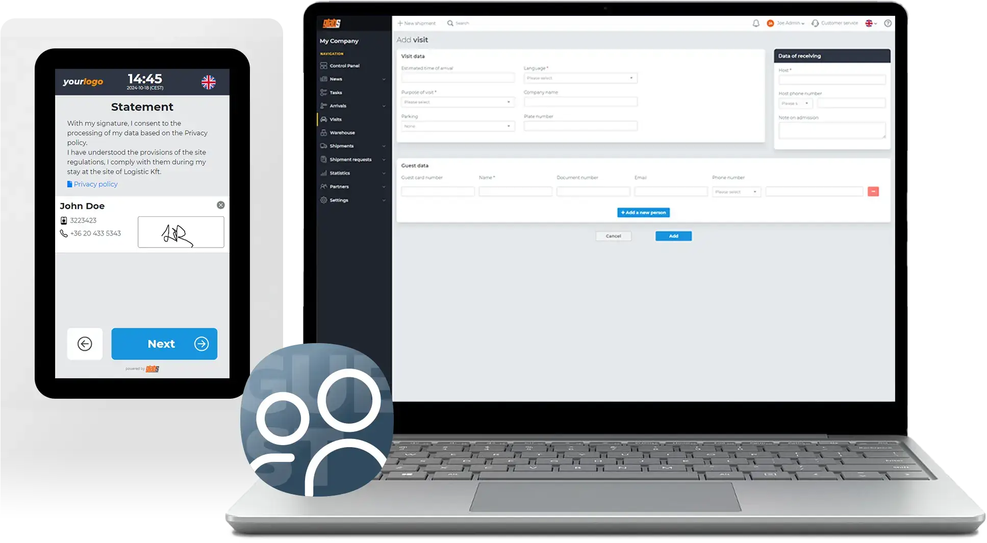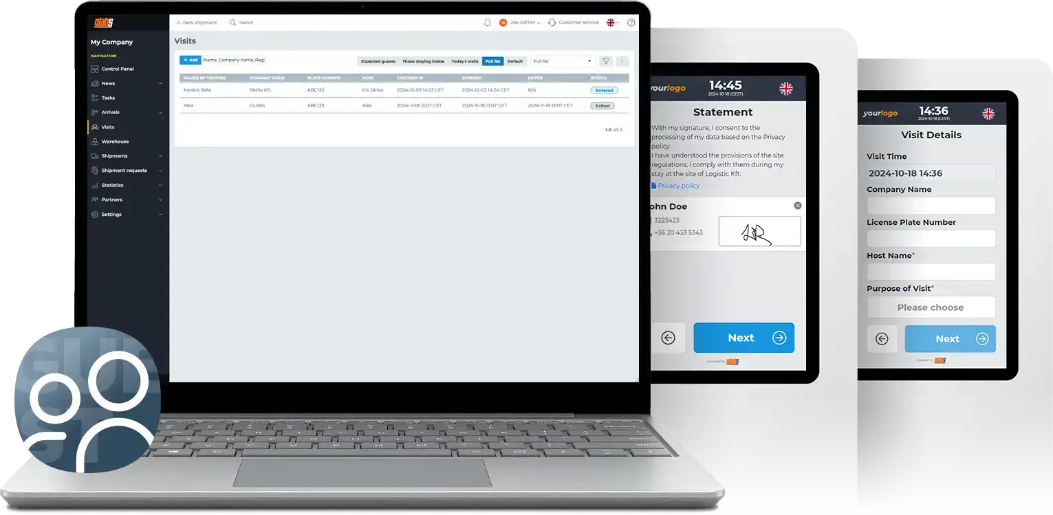 By using the system, the gate service or reception can manage all tasks through a single interface, simplifying operations while increasing site security and efficiency.