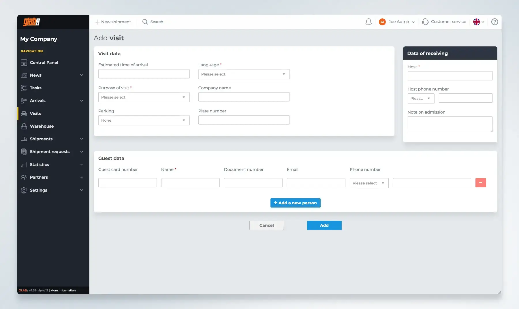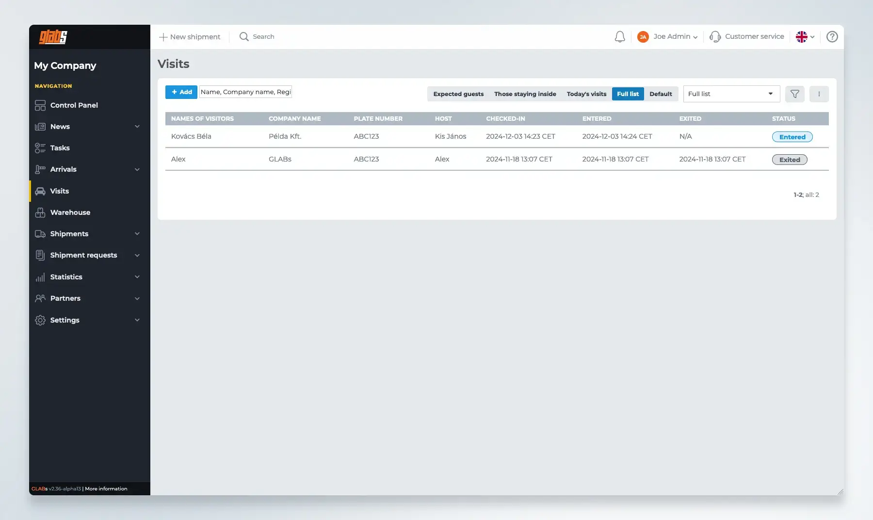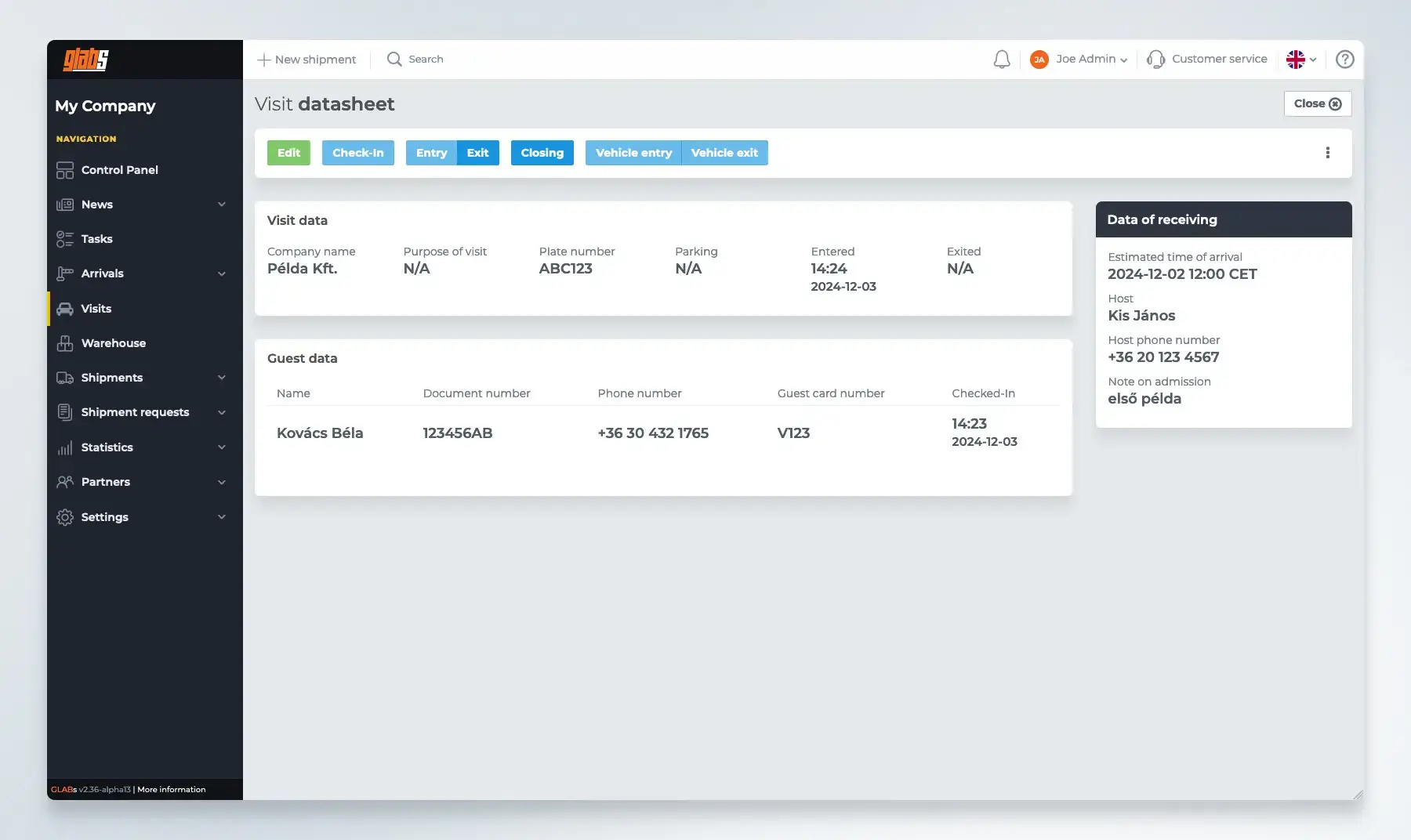 The GLABs Visitor Management module ensures that visitors’ personal data can only be accessed by those who require it for their work. Even the host cannot view the visitor’s personal data, guaranteeing full data protection. The system’s operation in compliance with the General Data Protection Regulation ensures that data storage and handling meet the strictest regulatory requirements.