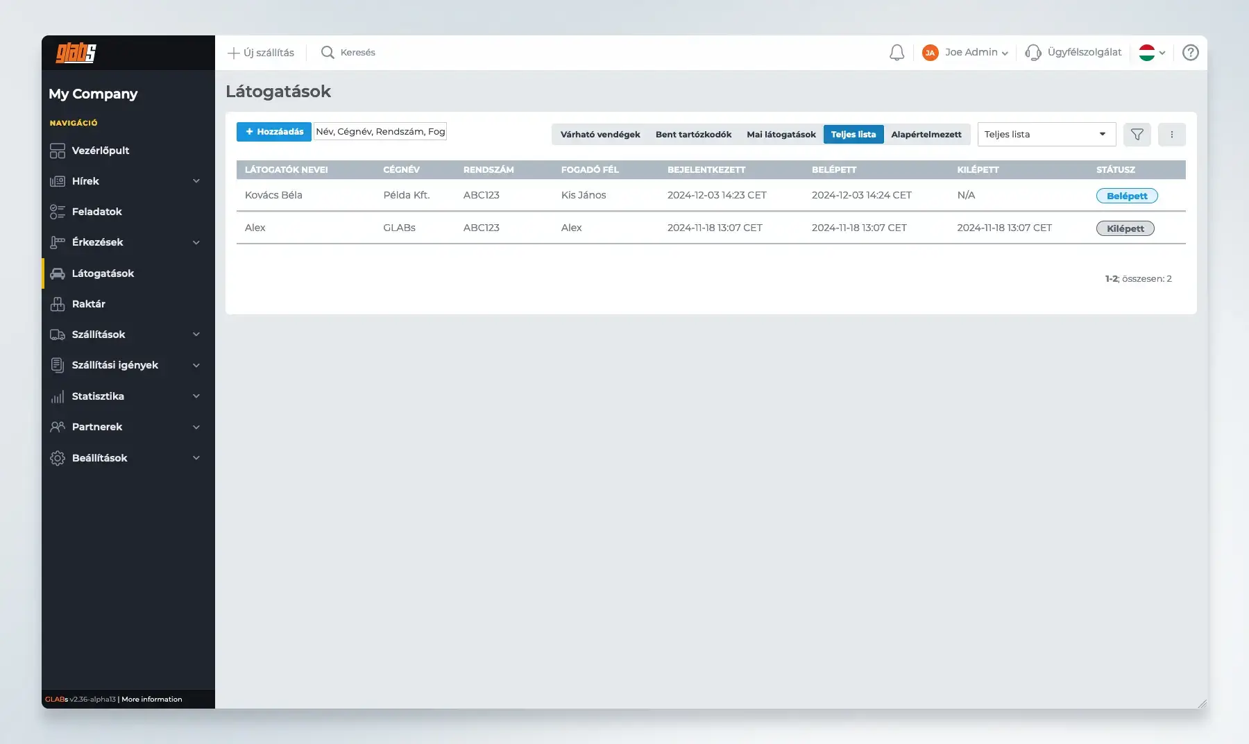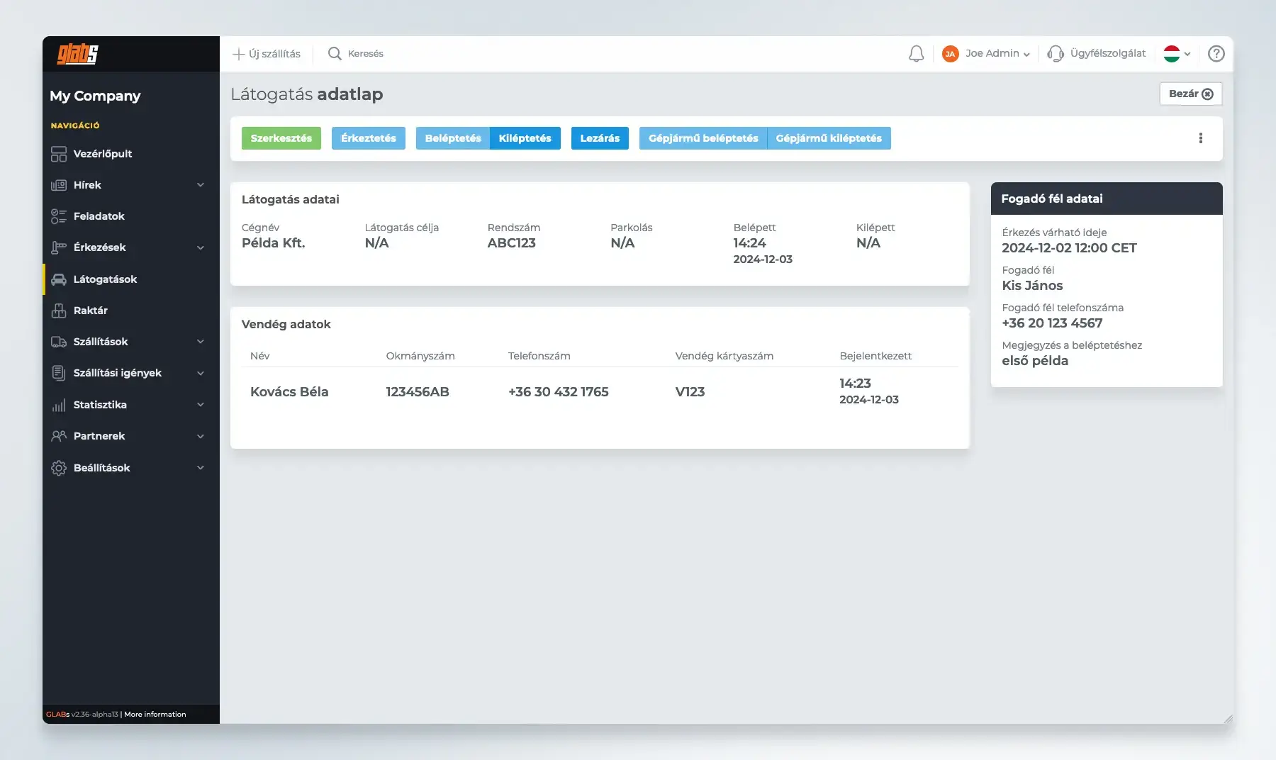 A GLABs Vendégkezelés modul biztosítja, hogy a vendégek személyes adataihoz kizárólag azok férhessenek hozzá, akiknek munkavégzésük során erre szükségük van. Még a fogadó fél sem láthatja a vendég személyes adatait, garantálva a teljes adatvédelmet. A rendszer GDPR-kompatibilis működése biztosítja, hogy az adatok tárolása és kezelése megfelel a legszigorúbb szabályozási előírásoknak.
